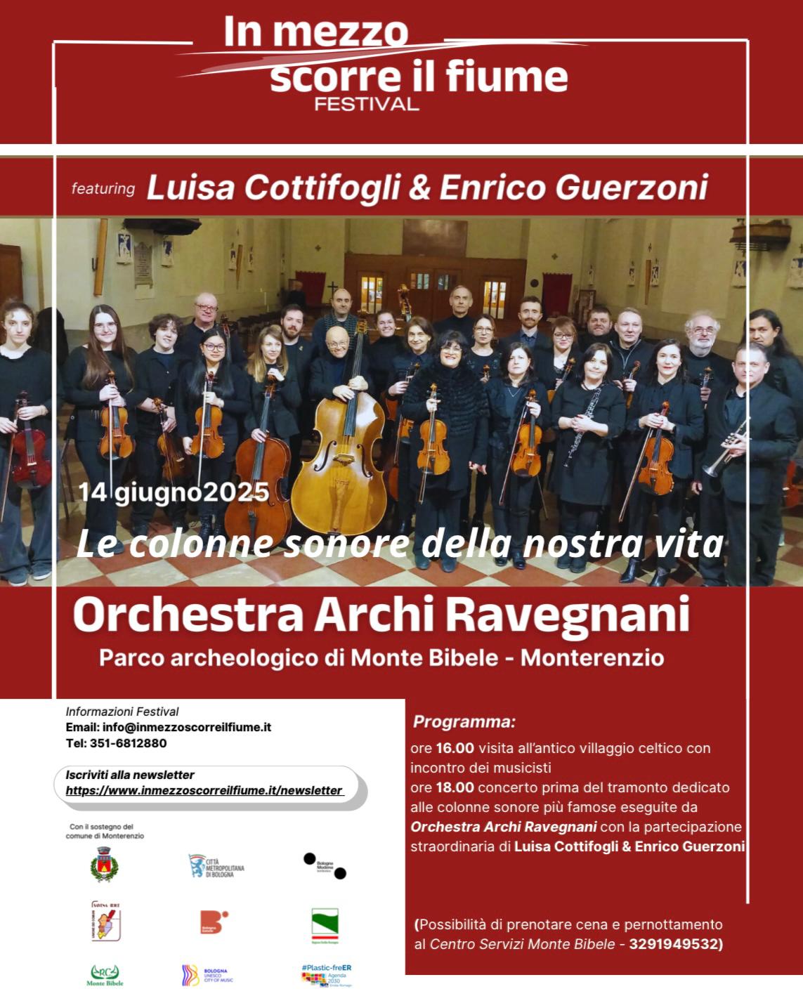 In mezzo scorre il fiume, il festival itinerante diretto da Luisa Cottifogli, che vuole creare uno stretto dialogo tra musica, arte e natura in luoghi splendidi dell’Appennino tosco-romagnolo e che propone un’estate all’insegna della cultura e del rispetto ambientale con affascinanti percorsi artistici fra le valli del Savena, dell’Idice, del Quaderna, del Sillaro, del Santerno, del Senio e scendendo fino alla pianura, per valorizzare le tradizioni locali e l’ambiente.